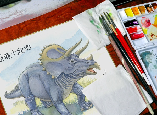 【限定1枚】岸大武郎先生 完成品色紙1『恐竜大紀行(トリケラトプス)』 岸大武郎
